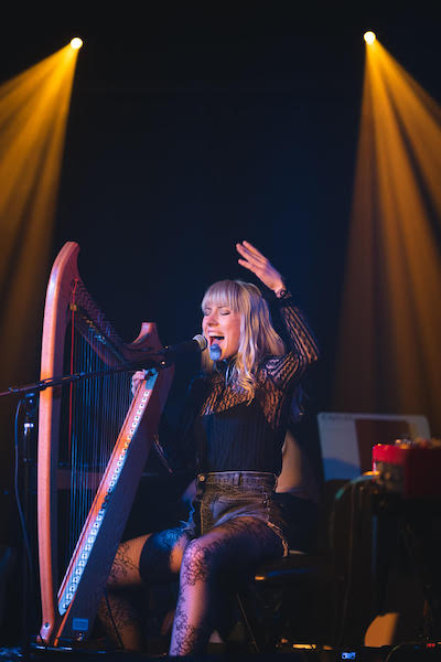 JOHNSON: I’d wanted to for years, it was just expensive and took a lot of time to find one that I could afford. I’d heard a couple of people talk about how it felt to play, and I had a belly feeling like I wanted that. It just took $5,000. I built a cardboard harp first and challenged myself to play for two months and see if I still enjoyed it, which I did.