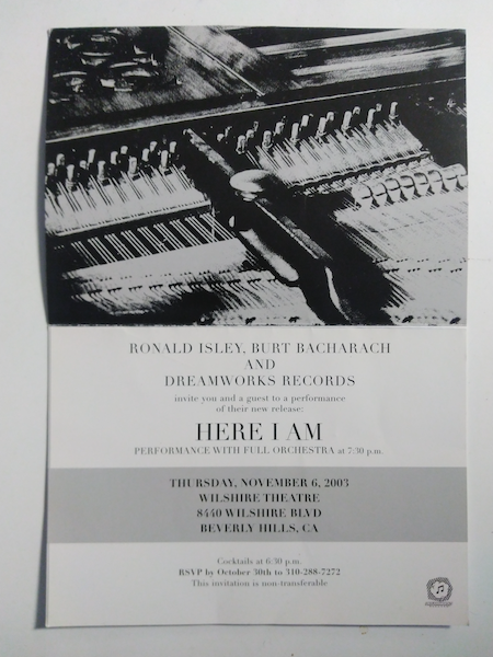Our conversation took place eight days after my mother and I saw him and Ron Isley perform their collaborative album, Here I Am, with a full orchestra at the Wilshire Theatre in Beverly Hills, California. Tears gushed copiously onstage and in the crowd as Isley and Bacharach delivered one of the most touching concert performances of that — or any other — year.
