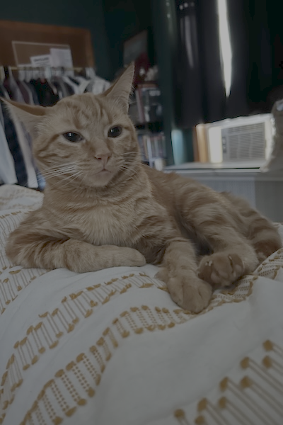 We then adopted Wolfgang, which is a 5-year-old black cat that we [took in] during COVID. Because we have so much love to give, we adopted Arnold, another ginger cat, in late January. His middle name is Schwarzenegger.
