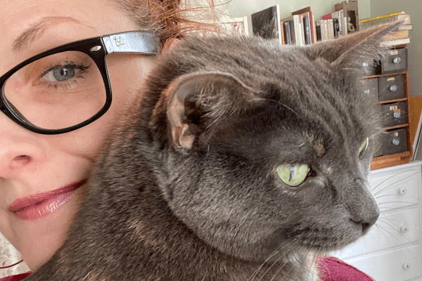 I don’t know, but we love it. It’s so fun. And Jerry’s enormous. He’s 6′ 6″ and has this tiny little runt of a girl cat that’s like his shadow. And I have this big, beefy, Rocky Balboa cat.