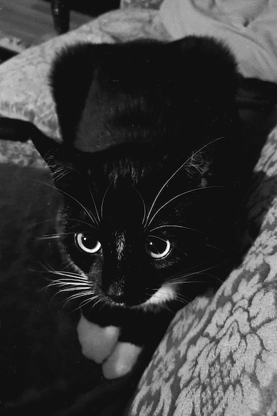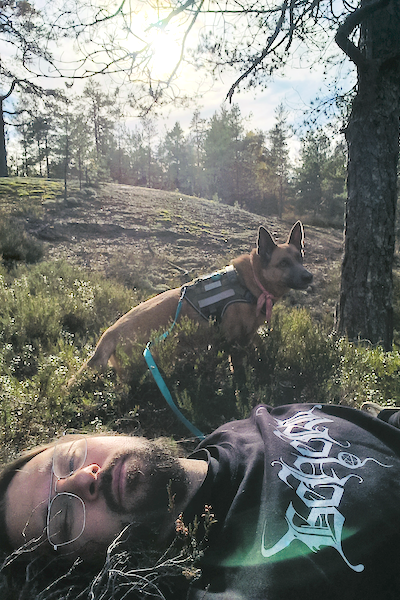 Hekla (7-year-old dog) and Touko (6-year-old cat) were already living with my partner when we moved[in] together, and so they had names already. Milli-Maila (cat, 2 years old) and Kaarna (cat, 1.5 years old) are both rescue cats who we adopted when they already had names, so we didn’t want to change them, as the names were fitting. Except Milli-Maila was originally just “Milli”; Maila was added as a tribute to Maila Nurmi [actress who created and played the film character Vampira].