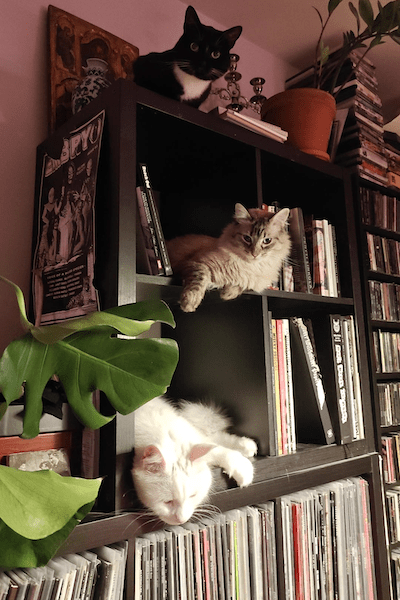 They all are in their own way. Touko may have one of the funniest habits, though: he likes to lick and bite the vinyl record spines and their plastic sleeves, especially in the morning, when he is waiting for the food. It’s usually the sound I wake up to.