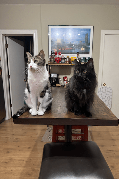 Lucy really did change my life in so many ways that when she died, we were just so sad and this apartment felt empty. During Covid I lost my parents about 1 year apart and with Lucy it was just too much. We decided we wanted cats. Kittens. 2 of them. A brother and sister or 2 sisters. I saw in a friend’s instagram story that a warehouse cat at her job had kittens that were 7 weeks old and needed homes. I went there and picked out two sisters! We love them and they honestly inspire us to be more successful so that we can afford them the best lives!