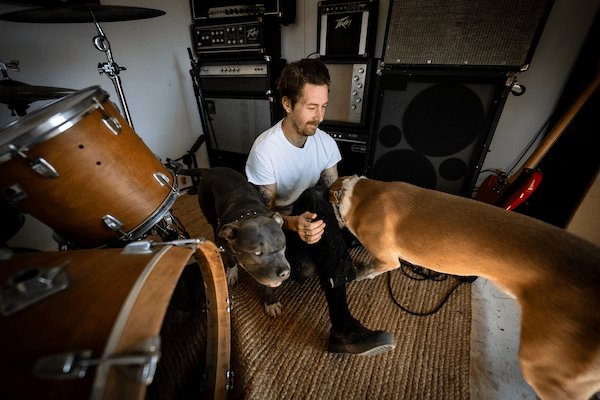 Matthew Reid handles vocals and plays guitar and bass for his noise-rock band NORMANS. But as much as he loves music, we’re pretty sure he prefers playing with his two gorgeous dogs. The L.A. band consists of former members of FEELS, Prissy Whip and Blonde Summer and released their self-titled debut through Solid Brass in January 2024. Fans of the Jesus Lizard, Metz and IDLES will appreciate and get hooked on NORMANS’s penchant for creating cacophonies.