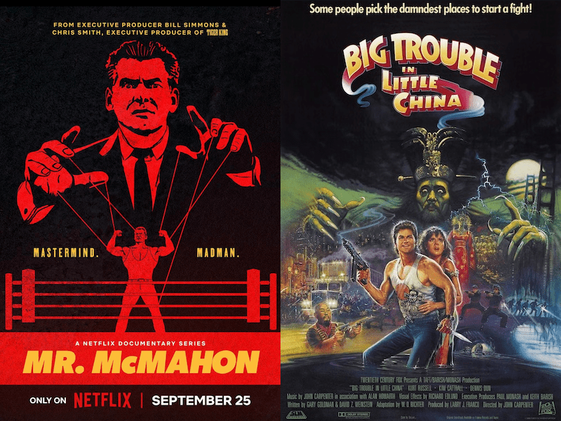 Posted in Doppelgängers, Features, Fun And Games, Polls with tags Big Trouble in Little China, Vince McMahon on 10/06/2024 by Kurt OrzeckLest there remain any doubt that the makers of Netflix’s new six-part docuseries about disgraced multibillionaire Vince McMahon, take a look at the kitschy movie poster that almost surely inspired Netflix’s advertising for Mr. McMahon.