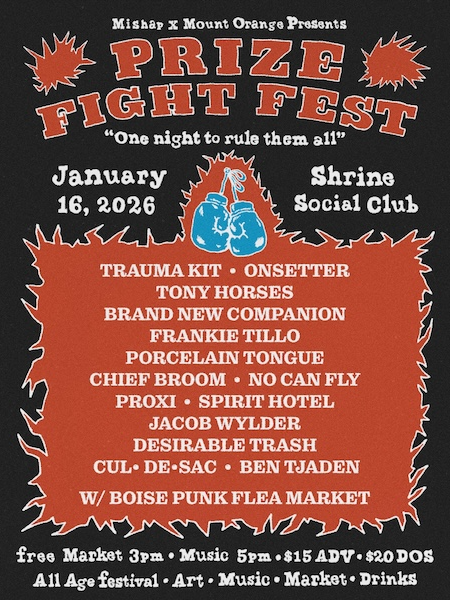 In case you haven’t heard – and really, God bless you if you haven’t – the president of the United States of America and Dana White are planning to stage a UFC fight on the White House South Lawn on June 14 as part of a “celebration” of Trump‘s birthday. Well, Boise’s music scene is planning a vastly more enjoyable, safer and morally legit event of its own: an all-ages battle of the bands referred to “Prize Fight Fest,” happening Jan. 16 at the Shrine Social Club.